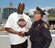 Miami Heat center Shaquille O'Neal acknowledges fans under a rain of confetti during the team's NBA Championship celebration at the Arena.